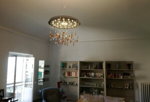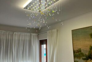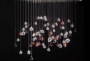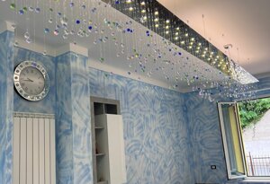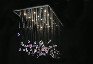 Una pioggia di cristalli che, come una primavera, fa sbocciare luce verso l’alto e verso il basso impreziosendo l’arredo.