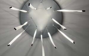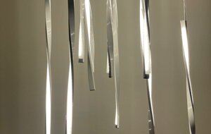 La sinfonia di steli che si intrecciano crea un incantevole gioco di luci, capace di diffondere luminosità e di integrarsi nell'arredamento generando un risultato scenografico di grande impatto visivo.