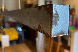 Il fascino dell'industriale. L'acciaio Corten autentico per una luce studiata con un design particolare e curato.
