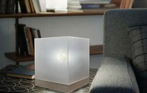 La forma geometrica semplice che emana luce in modo uniforme e diffuso, diventando parte integrante dell'ambiente come elemento decorativo e di arredamento della stanza.