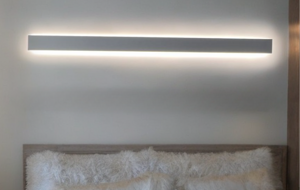 Un semplice segno di luce a LED che emerge dalla parete, desiderando illuminare l'ambiente circostante.